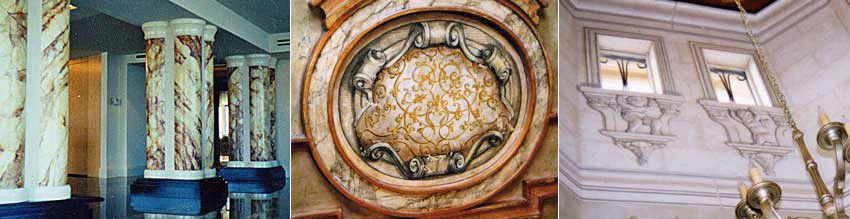 trompe l'oiel | faux finishes | marbling | wood graining | scagliola | antiquing | oil and water gilding | venetian plaster | stencilling | painted fabrics | Jenny Wraith